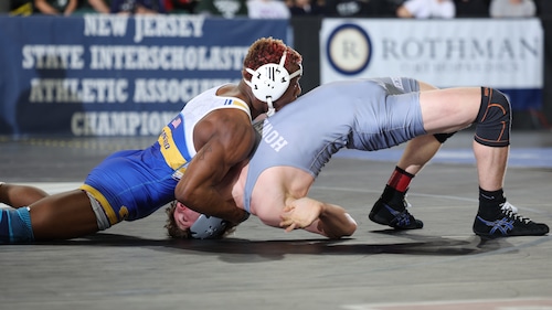 Jordan Chapman of Cranford beat Tanner Hodgins of Howell by technical fall during the semifinal round at 165 pounds at the 2024 NJSIAA State Wrestling Championships, Friday, March 1, 2024 at Boardwalk Hall in Atlantic City, N.J. Andrew Mills | NJ Advance Media